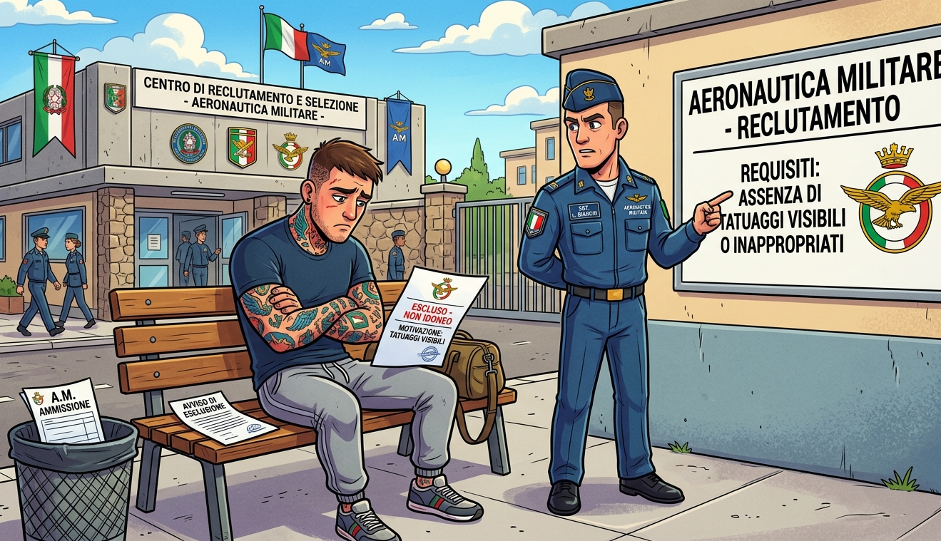 Ce lo spiega il Consiglio di Stato, con la sentenza n. 2172 del 16 marzo 2026, con cui ha confermato l’esclusione dall’arruolamento nell’Aeronautica Militare di un candidato che presentava un esteso tatuaggio situato sulla gamba sinistra, tra il polpaccio e la zona poplitea, tenendo conto della documentazione amministrativa e di quanto risultante dal verbale di visita medica, in cui i valutatori hanno accertato l’effettiva visibilità del disegno cutaneo, specie con l’uniforme ginnica.