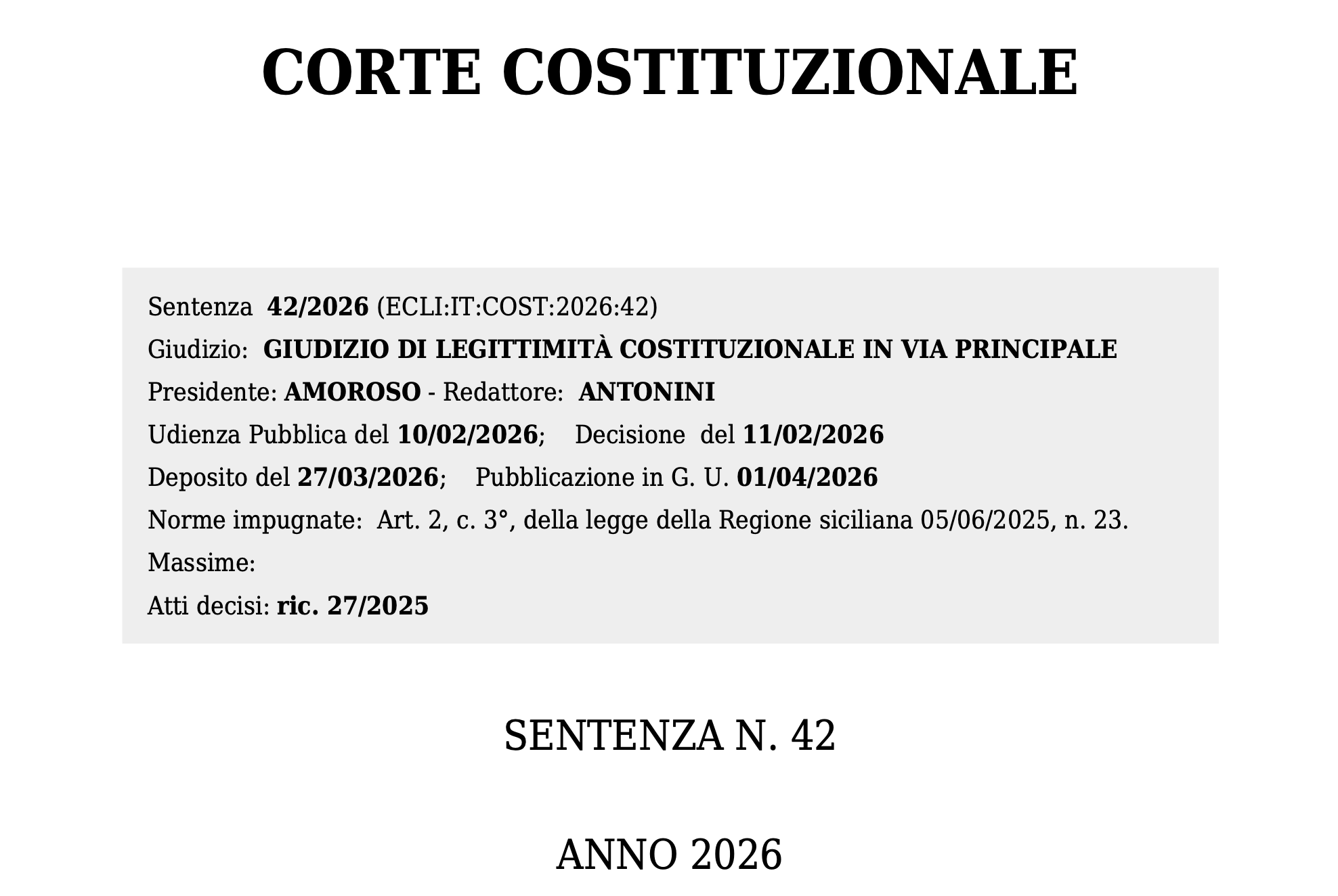 L’articolo 2, comma 3, della legge della Regione Siciliana n. 23 del 2025 deve essere interpretato in senso restrittivo e conforme alla Costituzione, escludendo l’indizione di procedure concorsuali riservate ai soli sanitari non obiettori di coscienza. La libertà di coscienza, quale valore di rango costituzionale, impedisce invero che la convinzione morale dell’individuo operi come requisito escludente l’accesso al pubblico impiego, dovendo l’amministrazione garantire l’erogazione delle prestazioni di interruzione volontaria di gravidanza attraverso strumenti che non pregiudichino l’eguaglianza dei candidati. Così sancisce la Corte costituzionale con la pronuncia n. 42/2026.